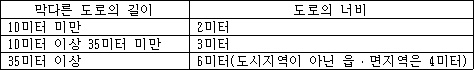 1. 대지에 접한 통과도로의 필요너비와 막다른도로의 너비와 길이 따른 필요너비를 확보하는 만큼 건축선을 후퇴한다.